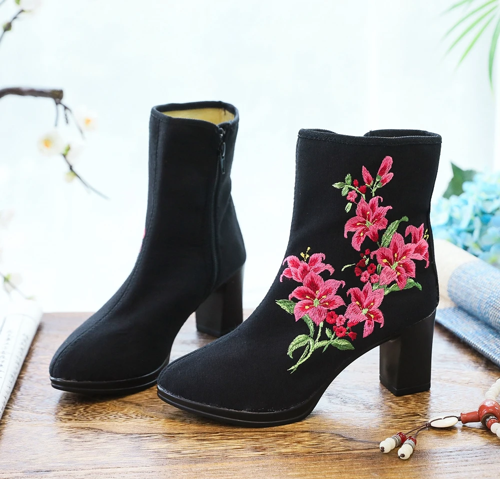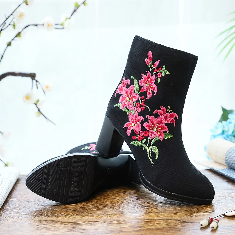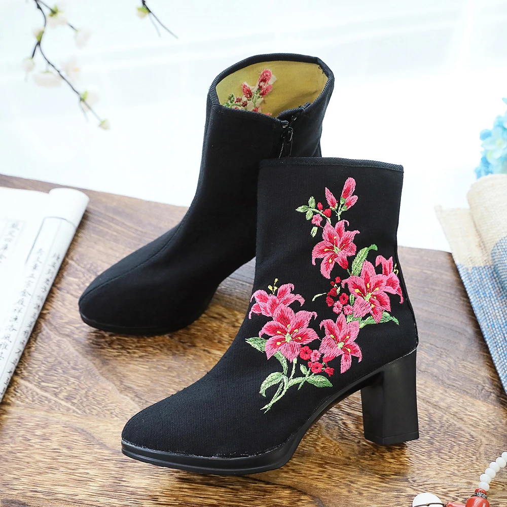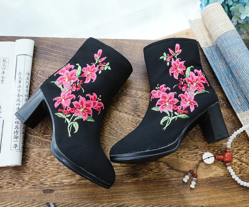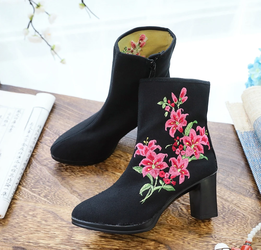 - Ricamo tradizionale e Stile Moderno: Il ricamo richiama le calzature tradizionali cinesi, ma con il design moderno dello stivaletto.Â